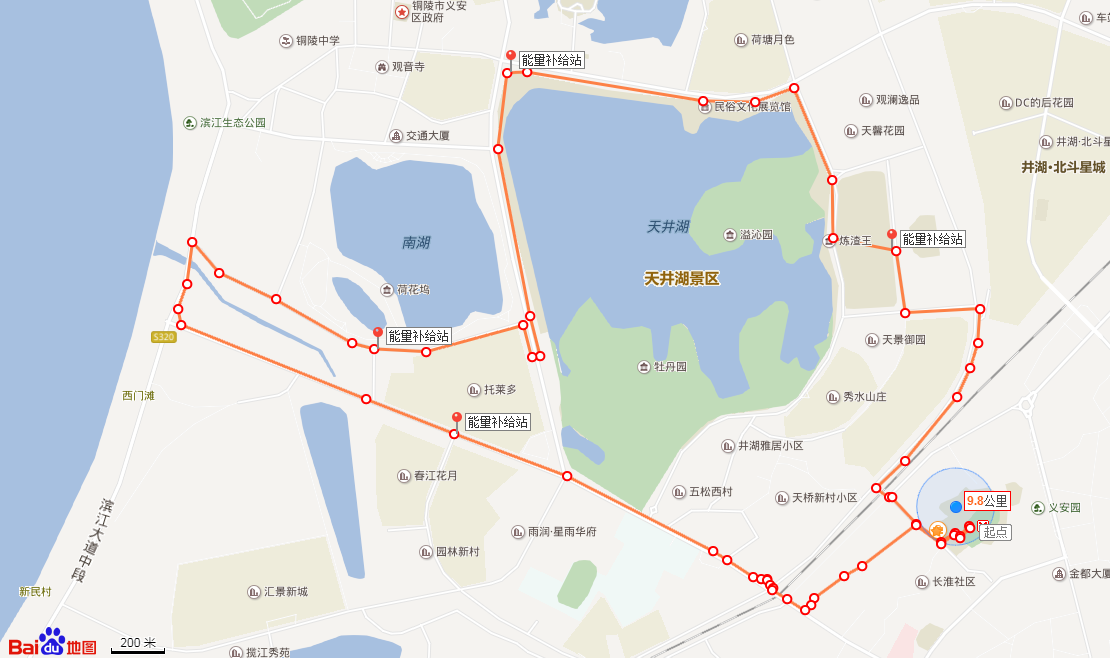 學(xué)校―育才路―五松一路―長(zhǎng)江西路―濱江大道北段―濱湖支路―井湖路―建設(shè)東路西段―濱湖路―市政府圍合片A―湖東路―育才路―回到學(xué)校