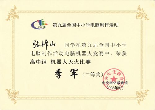 2008年機(jī)器人獲獎證書掃描