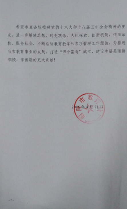 2015年,我校堅(jiān)持以“身體健康,心理陽光,學(xué)業(yè)進(jìn)步”為辦學(xué)目標(biāo),積極推進(jìn)教育教學(xué)改革,實(shí)行精細(xì)化管理,辦學(xué)成績得到社會(huì)各界的廣泛贊譽(yù),在2015年度市直學(xué)?己酥,市三中以全市第一名的成績被評(píng)為2015年度“明星學(xué)校”。