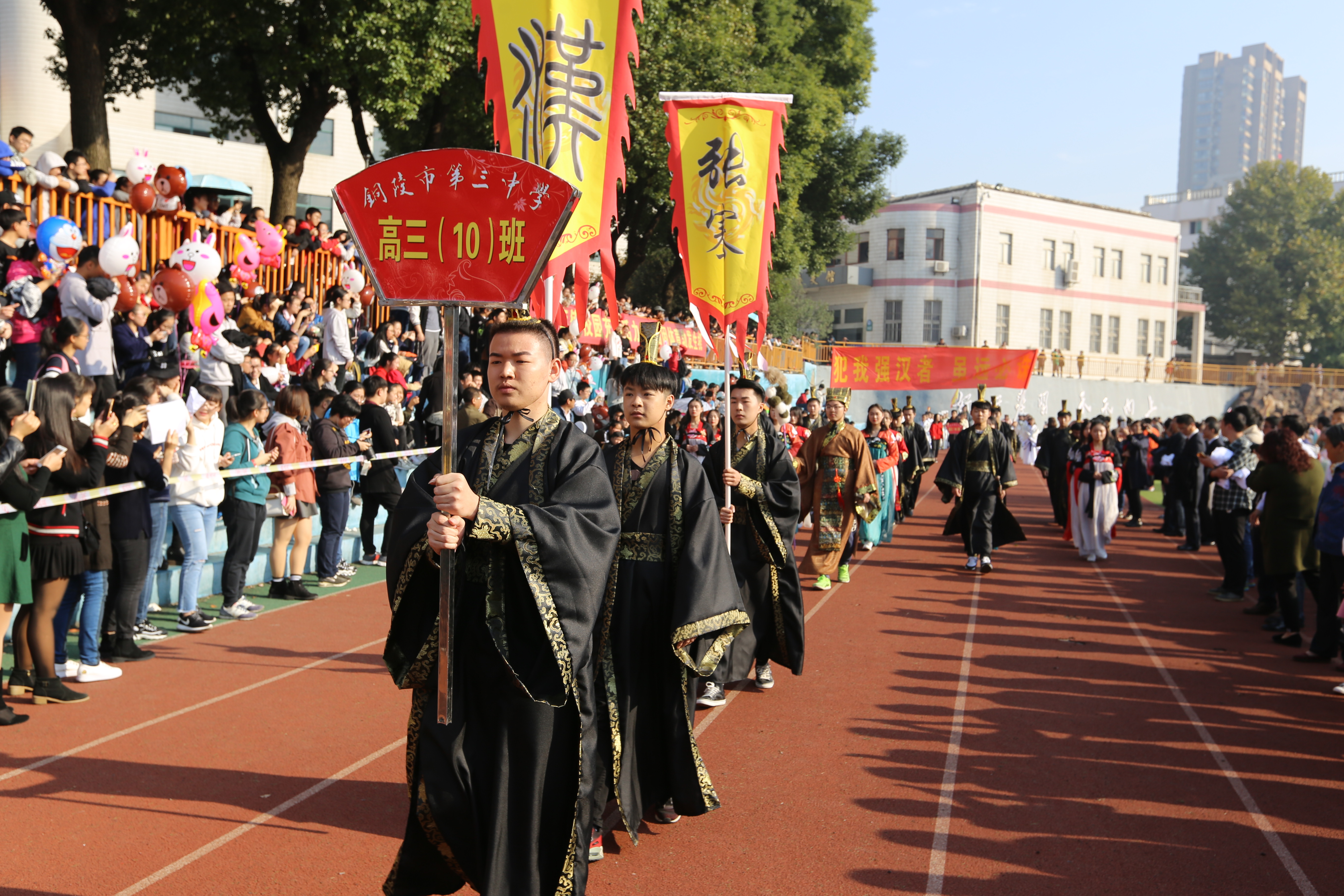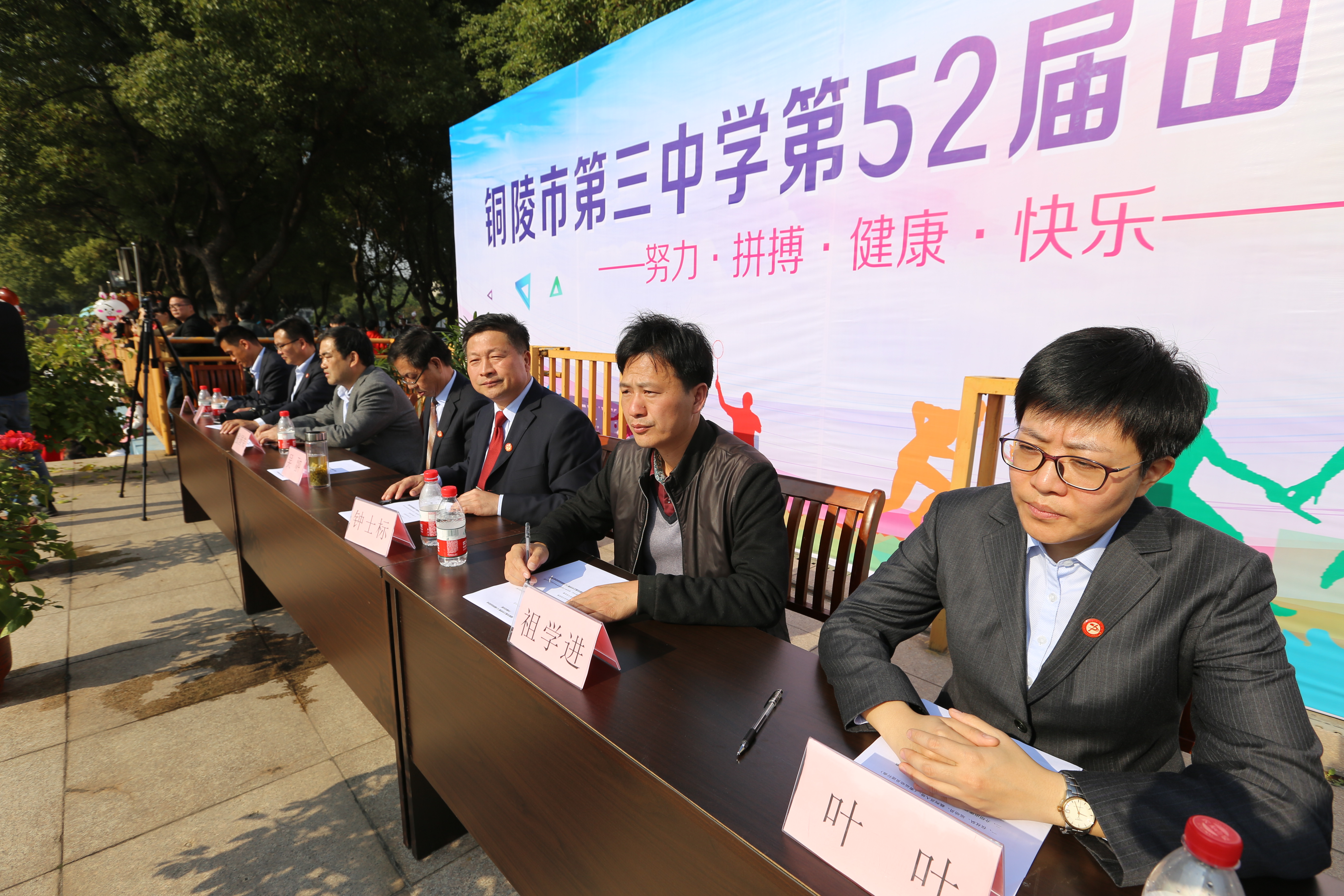 本校訊 11月2日上午,倍受關(guān)注的銅陵市第三中學(xué)第五十二屆田徑運(yùn)動(dòng)會在體育操場開幕。銅陵三中黨委書記、校長鐘士標(biāo),結(jié)對友好學(xué)校樅陽湯溝中學(xué)副校長祖學(xué)進(jìn),銅陵三中黨委副書記吳翀,銅陵三中副校長葉葉,銅陵三中副校長張國榮等領(lǐng)導(dǎo)出席開幕式。開幕式由銅陵三中教務(wù)處主任張尤俊主持。