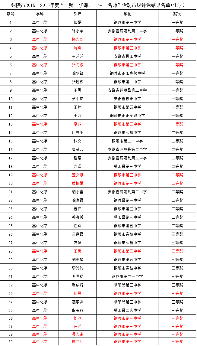 附件1:銅陵市2015—2016年度“一師一優(yōu)課、一課一名師”活動(dòng)高中部獲獎(jiǎng)名單