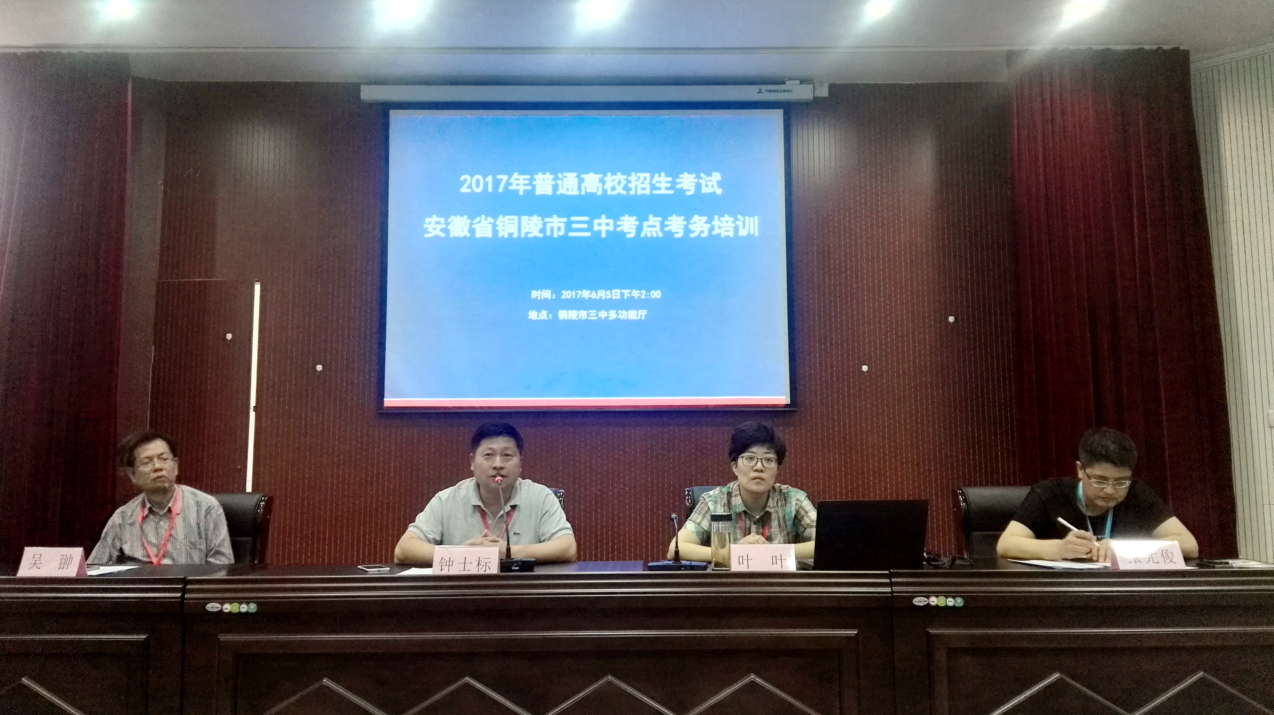 會上,副校長葉葉就今年高考有關(guān)問題進行了培訓,組織大家觀看了高考監(jiān)考考務規(guī)范操作視頻文件,希望監(jiān)考教師以對全體考生負責的態(tài)度對待考試,做好人文關(guān)懷,并就銅陵三中考點各考場具體分布作了詳細說明。