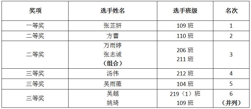 經現(xiàn)場評分,共七位(組)選手榮獲一二三等獎。具體名單如下: