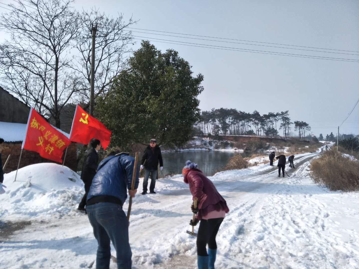 1月30日,樅陽(yáng)縣義津鎮(zhèn)義東村黨委書(shū)記李經(jīng)邦同志與市三中駐村扶貧工作隊(duì)長(zhǎng)林強(qiáng)同志帶領(lǐng)村兩委干部及黨員志愿者在經(jīng)過(guò)我村的交通要道-----“義浮路”上掃雪除冰,確保道路暢通!