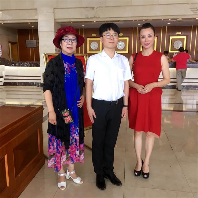 評(píng)委王秀琴(左一)、安徽交通廣播電臺(tái)主持人余慧(右一)與馮慶同學(xué)留影