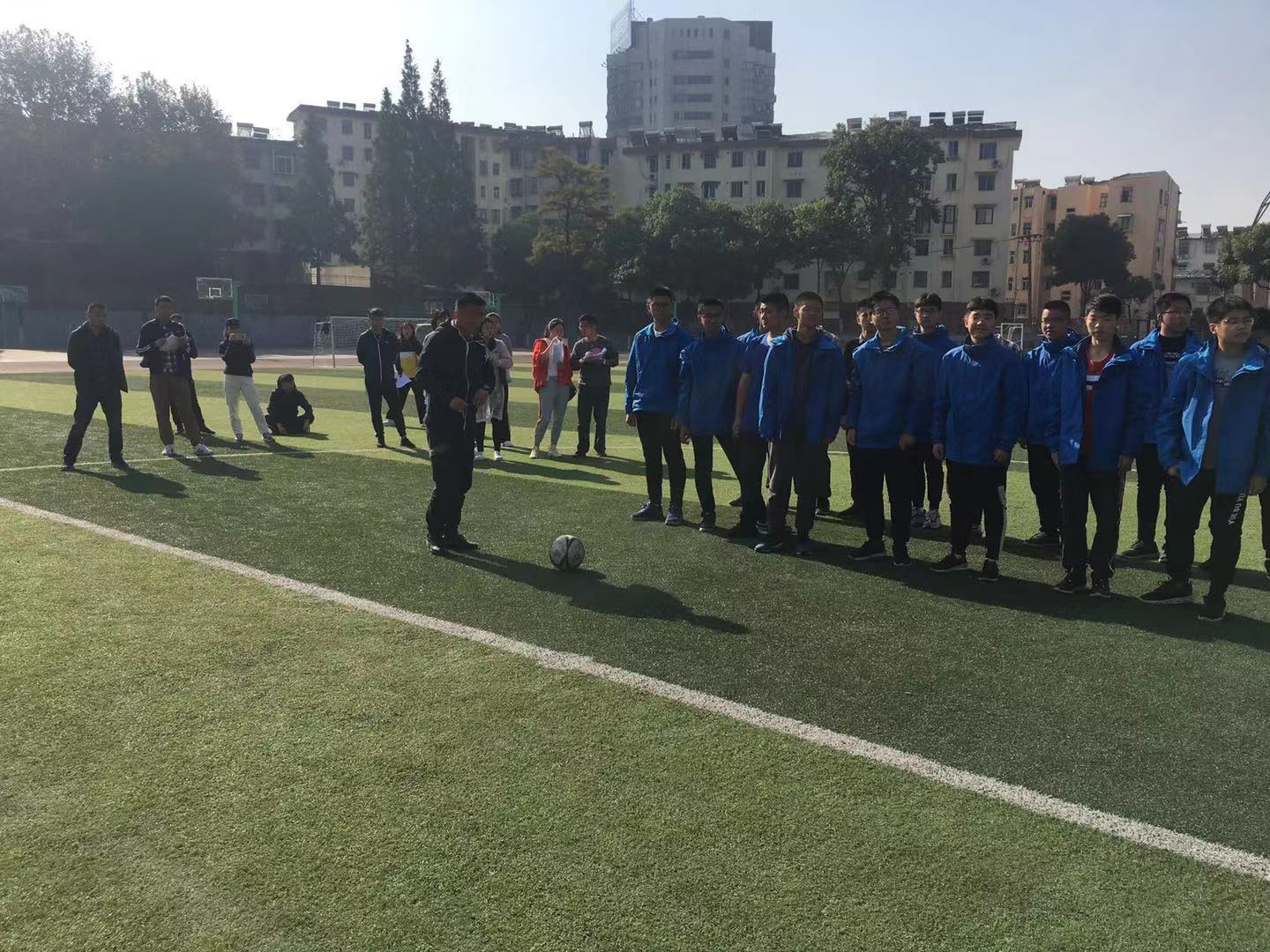 11月11日上午,雖然是銅陵市中小學田徑比賽的最后一天,但是依然沒有讓來我校聽課的氛圍降一點熱度,來自全市12個中小學、20多名體育教師齊聚我校足球場,觀摩魯仕緯老師的《足球--腳內(nèi)側(cè)踢球》中心備課組活動公開課。足球腳內(nèi)側(cè)踢球時足球踢球比賽中運用最多的技術(shù),傳球、控球、射門都可以運用,足球場上90%的傳球都是用腳內(nèi)側(cè)踢球技術(shù)完成的。