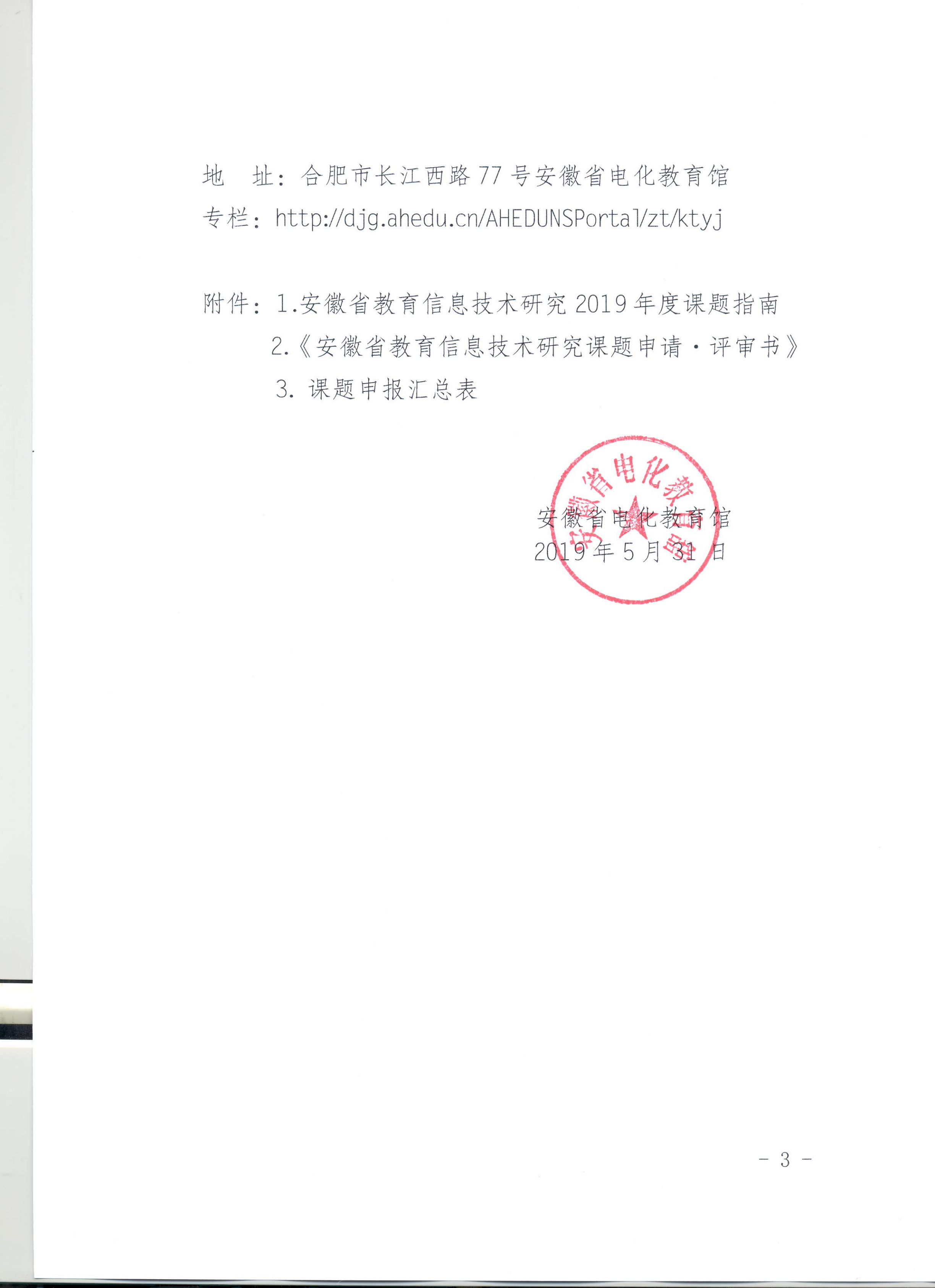 現(xiàn)將《關(guān)于組織開展安徽省教育信息技術(shù)研究2019年度課題申報(bào)工作的通知》(省電教〔2019〕11號(hào))轉(zhuǎn)發(fā)給你們,請(qǐng)根據(jù)文件要求積極組織申報(bào),并于2019年7月5日前將課題申報(bào)材料(電子檔)上報(bào)市教體局電教館。具體要求請(qǐng)見附件。