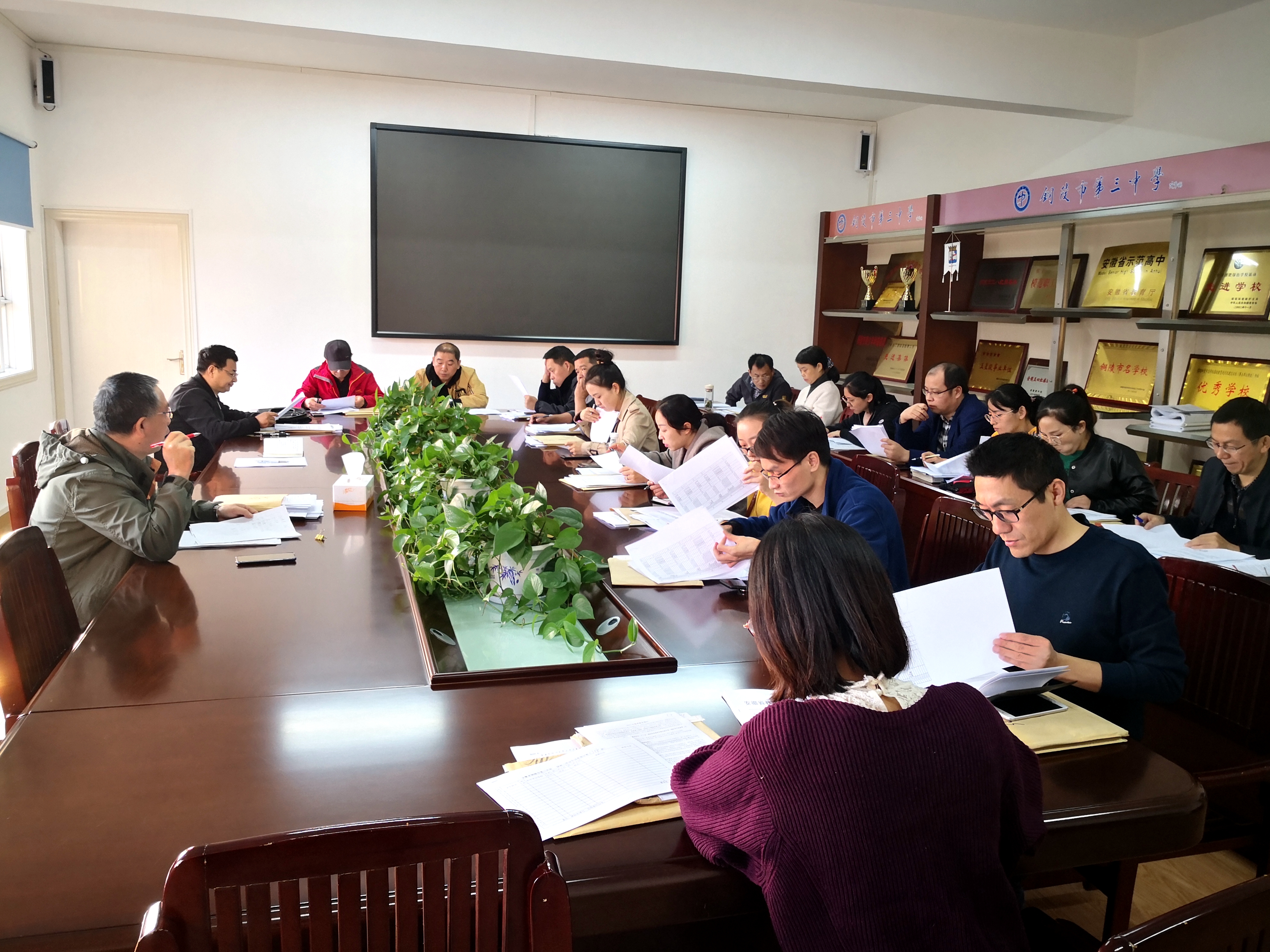 10月21日下午,銅陵三中2021屆高考報名培訓會在綜合樓五樓會議室召開。教務處主任徐盼,教務員楊明英,高三年級部部長方進以及全體高三年級班主任老師參加培訓會。會議由教務處主任徐盼主持。