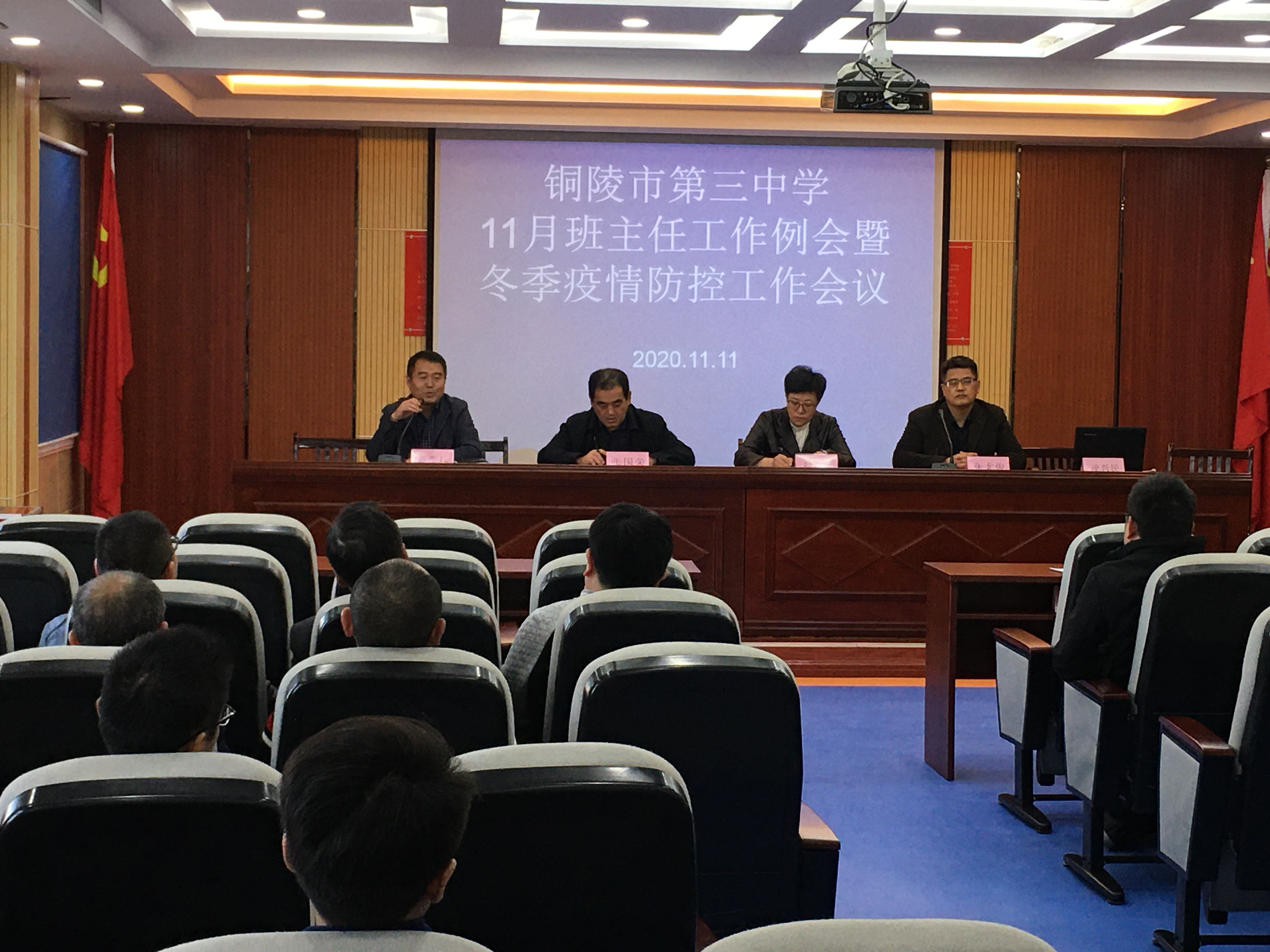 11月11日下午,銅陵市第三中學(xué)11月班主任工作例會暨冬季疫情防控工作會議在綜合樓五樓會議室召開。校黨委副書記葉葉,校黨委委員、副校長張國榮,校黨委委員、副校長張尤俊,校黨委委員、政教處主任章學(xué)標(biāo)等領(lǐng)導(dǎo)和全體班主任參加會議,會議由校黨委委員、政教處主任章學(xué)標(biāo)主持。
