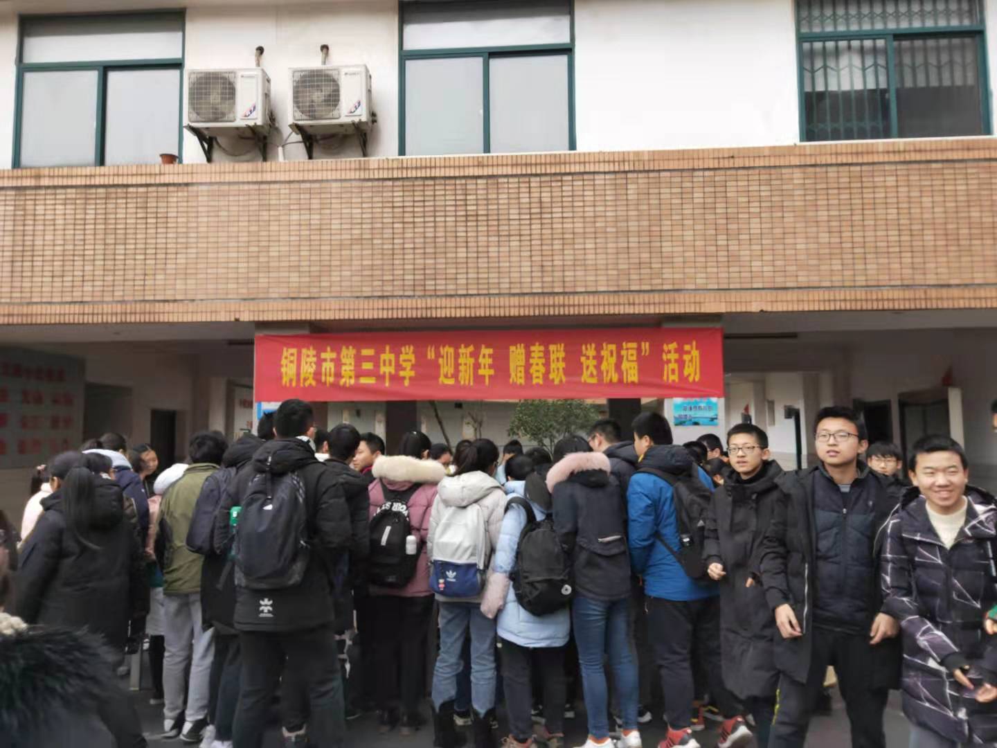 為迎接2020年新春佳節(jié)的到來,弘揚中華民族優(yōu)秀傳統(tǒng)文化,豐富教職工的精神文化生活,2020年元月18日上午,校工會在二號行政樓大廳前舉行了銅陵市第三中學(xué)“迎新年、贈春聯(lián)、送祝福”活動。