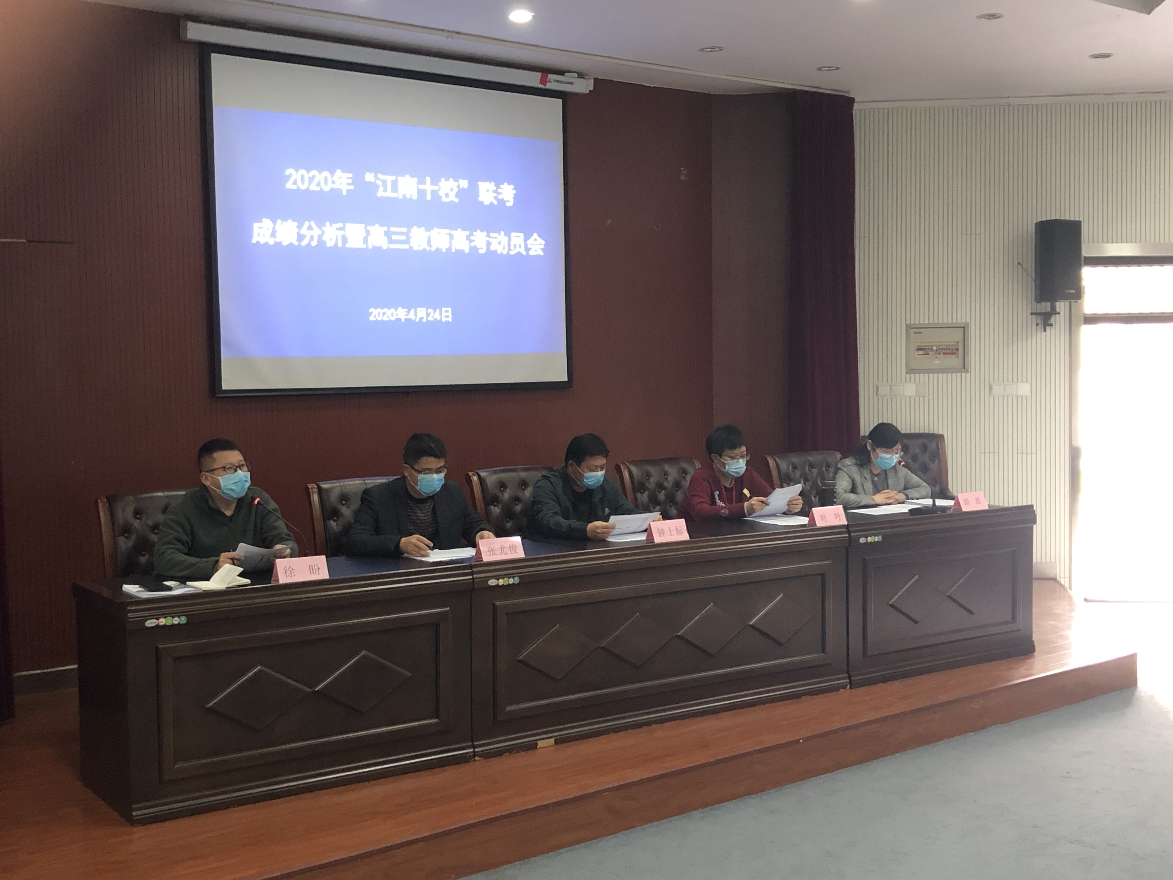 4月24日下午,銅陵三中2020年江南十校聯(lián)考成績分析暨高三教師高考動員會在多功能廳召開。校黨委書記、校長鐘士標(biāo),校黨委委員、副書記葉葉,校黨委委員、副校長張尤俊,教務(wù)處主任徐盼以及全體高三教師出席會議。會議由高三年級部長胡晨主持。