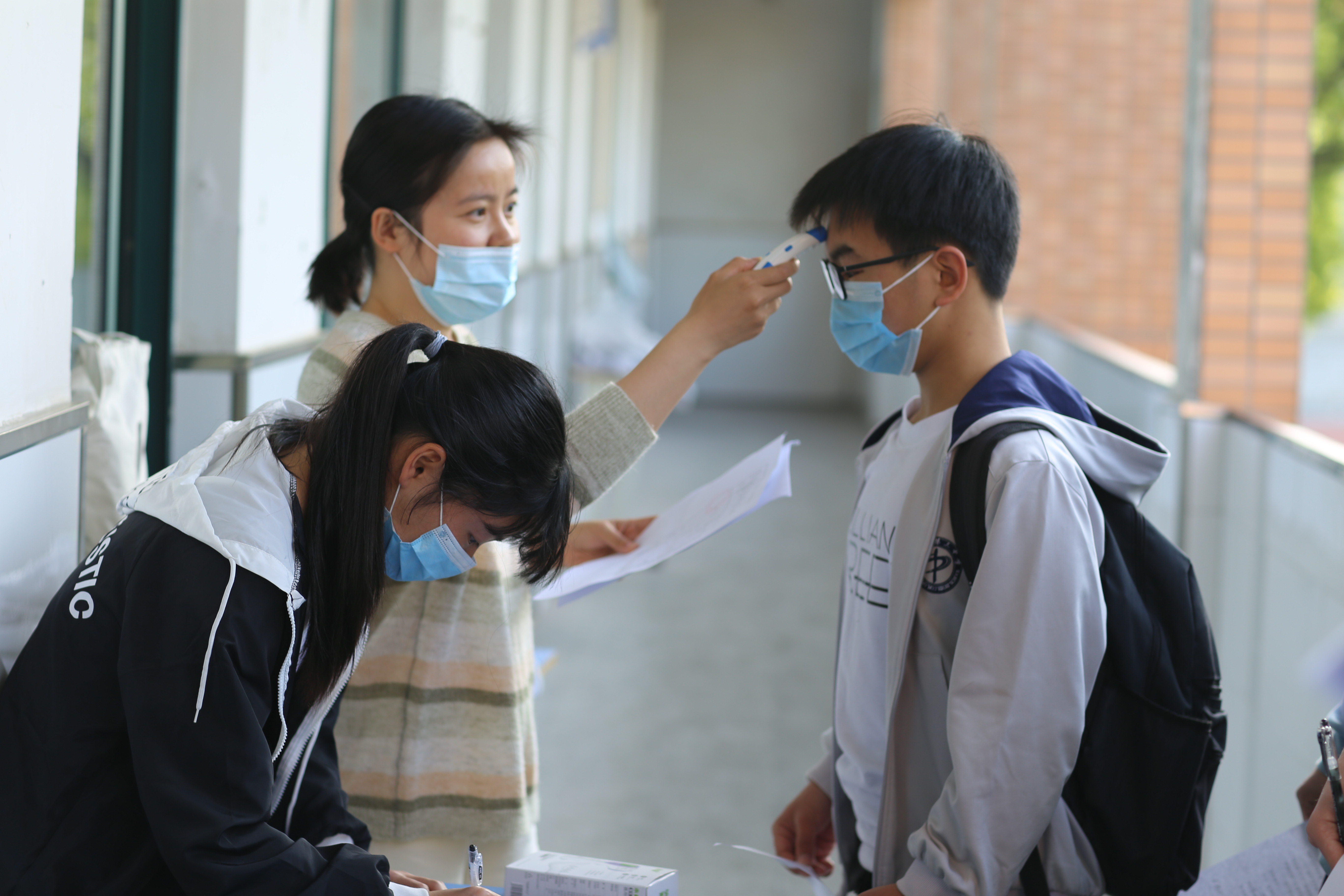 班主任對每一名進(jìn)入班級的同學(xué)進(jìn)行體溫檢測、