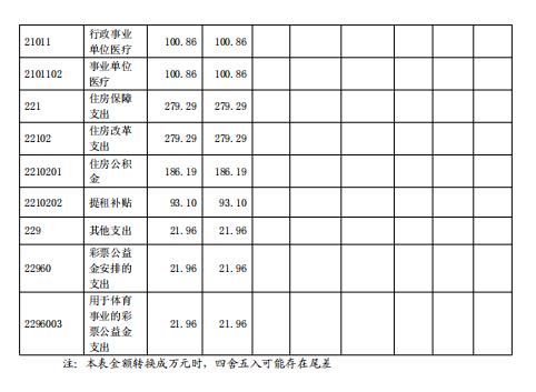 1.其他支出(類(lèi))彩票公益金安排的支出(款)用于體育事業(yè)的彩票公益金支出(項(xiàng))。年初預(yù)算為 0 萬(wàn)元,支出決算為 21.96 萬(wàn)元,決算數(shù)大于預(yù)算數(shù)的主要原因是此款項(xiàng)為年中追加單位預(yù)算指標(biāo)。
