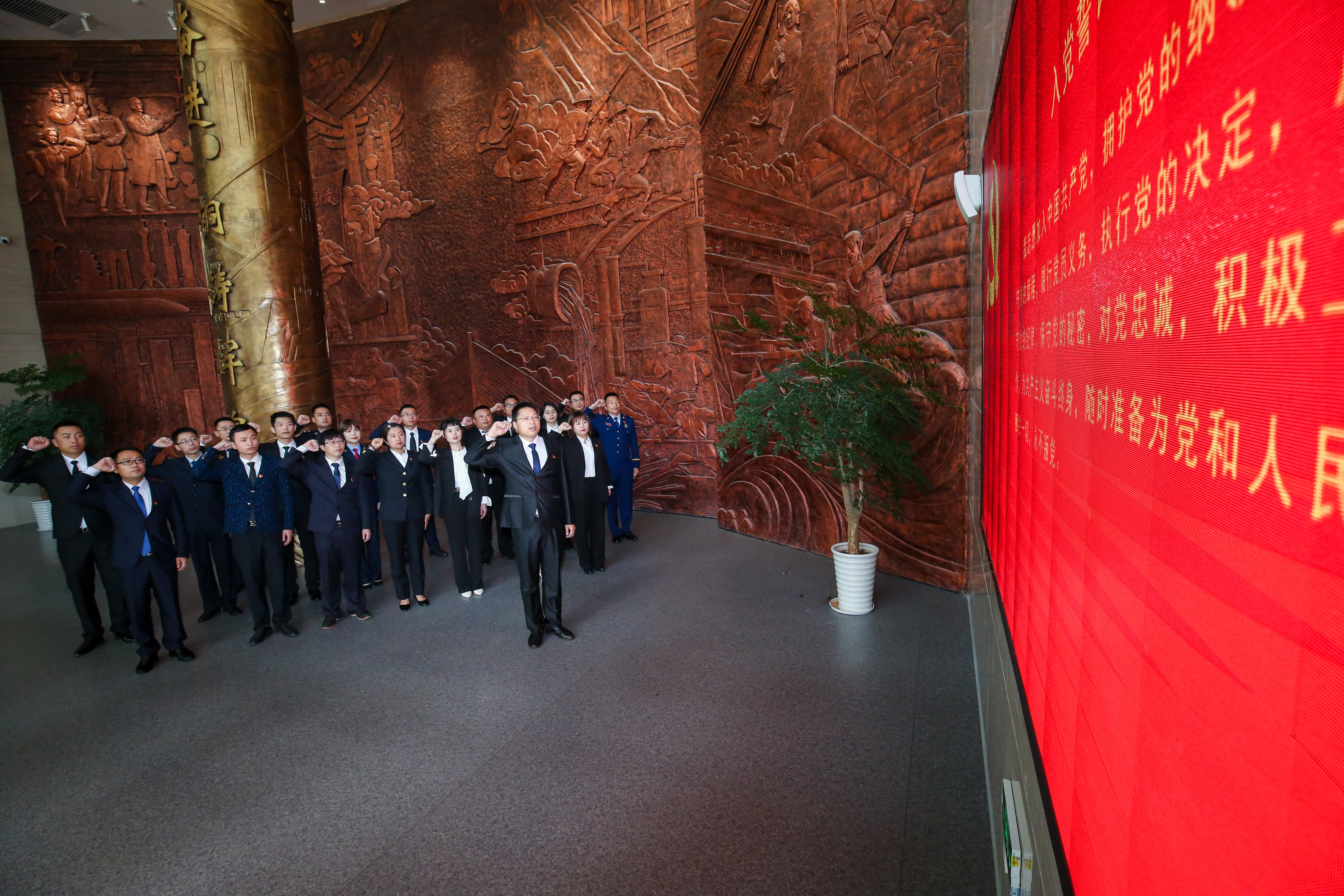 頒獎(jiǎng)和接見(jiàn)儀式結(jié)束后,第六屆“銅陵青年五四獎(jiǎng)?wù)隆?/span>個(gè)人和集體獲得者全體前往銅陵市黨史館,開(kāi)展“學(xué)黨史、強(qiáng)信念、跟黨走”為主題的展覽參觀和黨史學(xué)習(xí)教育系列活動(dòng)。參觀前,在一樓大廳,全體青年面向黨旗,莊嚴(yán)宣誓,重溫入黨誓詞,宣誓儀式由我校王俊朝老師領(lǐng)誓。