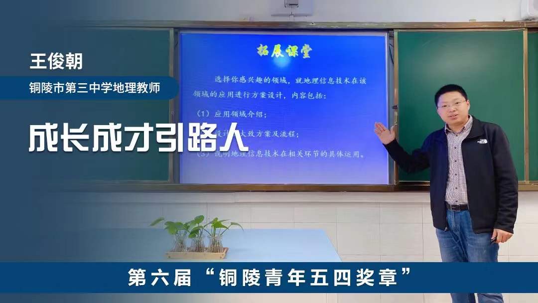 王俊朝,男,漢族,1985年7月出生,中共黨員,研究生學(xué)歷,銅陵市第三中學(xué)地理教師。