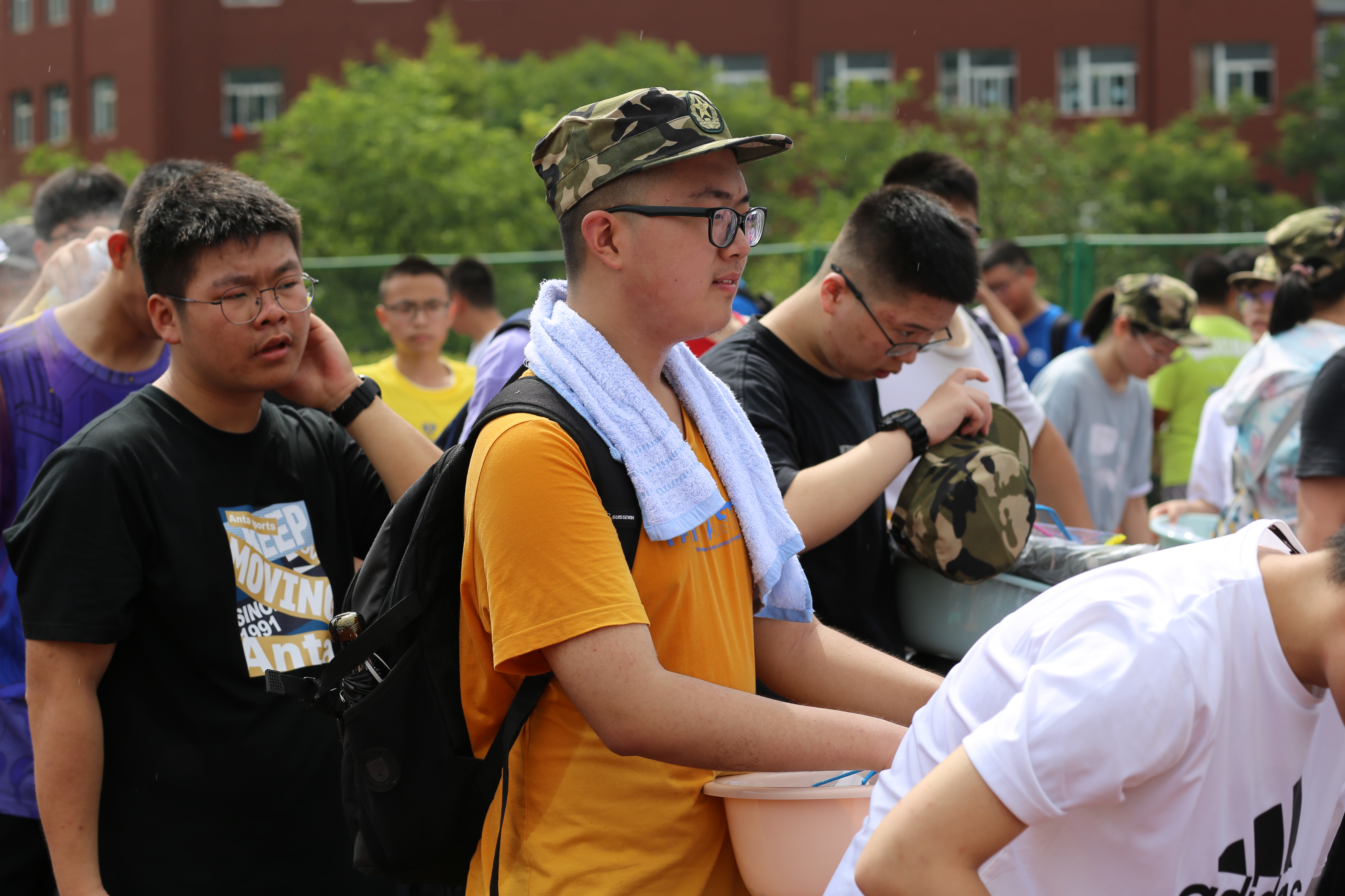 大江研學(xué)基地的工作人員派發(fā)服裝,一切,都被安排的井井有條。