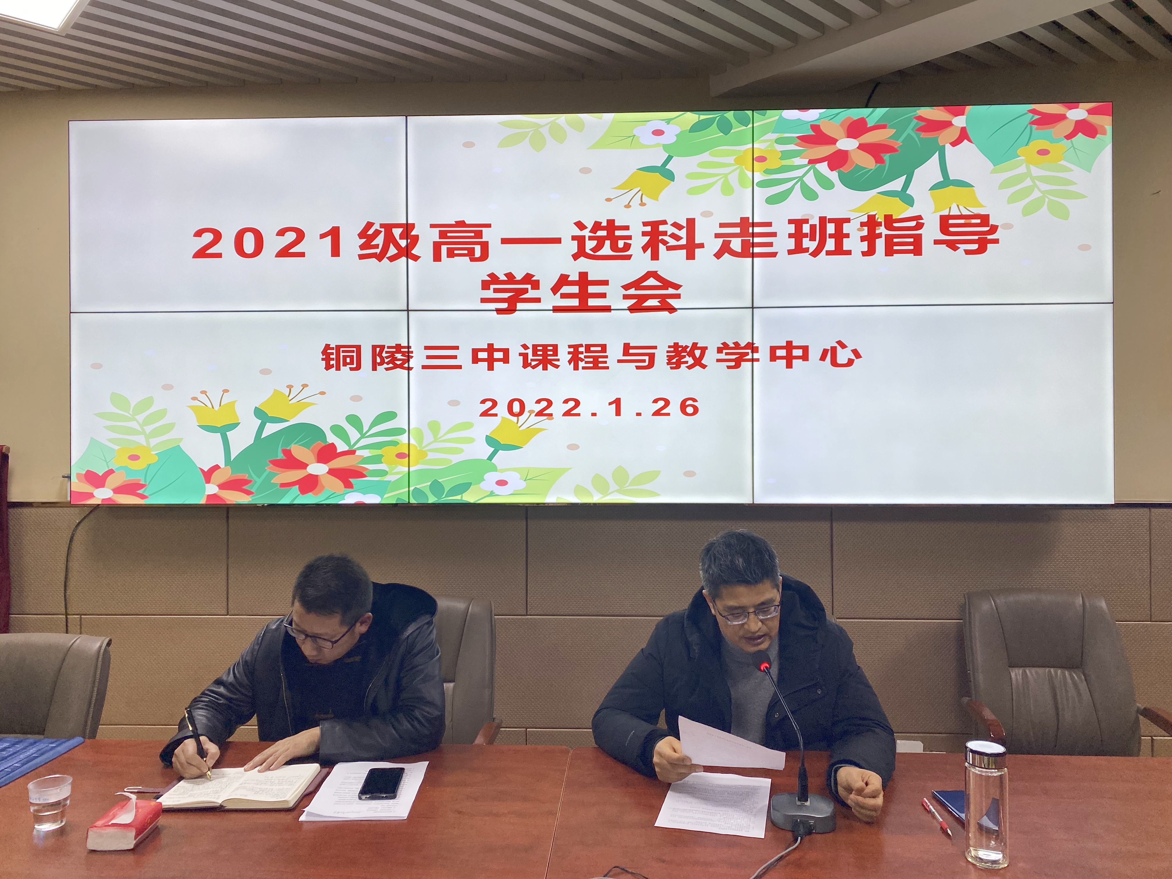 2022年1月26日下午,課程與教學(xué)中心召開2021級高一年級選科走班指導(dǎo)家長會和學(xué)生會兩場廣播會。黨委書記、校長葉葉,黨委委員、副校長張尤俊出席會議并講話。會議由課程與教學(xué)中心主任徐盼主持。