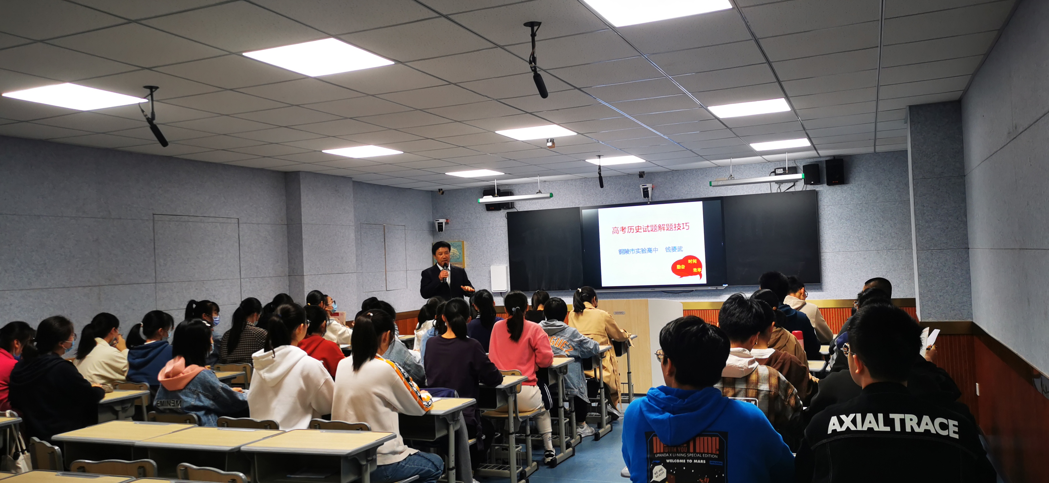 為了有效進(jìn)行二輪復(fù)習(xí),研究新課程背景下高三歷史復(fù)習(xí)備課策略,4月29日下午,銅陵市歷史正高級(jí)教師“錢要武名師工作室”領(lǐng)銜人錢要武老師來我校進(jìn)行高三歷史教學(xué)研討課,本次活動(dòng)由我校歷史教研組長(zhǎng)陳蕾蕾主持,采取了線下教學(xué)和線上直播相結(jié)合的方式,向全市高三歷史教師和學(xué)生同步直播。