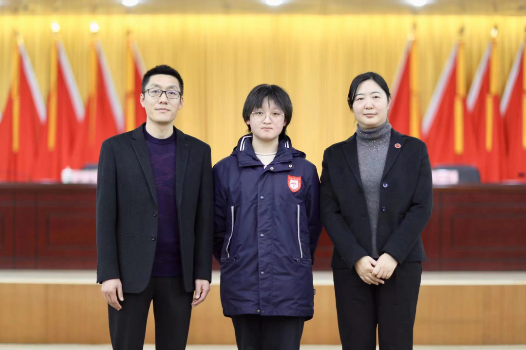 ▲指導(dǎo)老師王小輝老師、徐云老師與吳雨凌同學(xué)