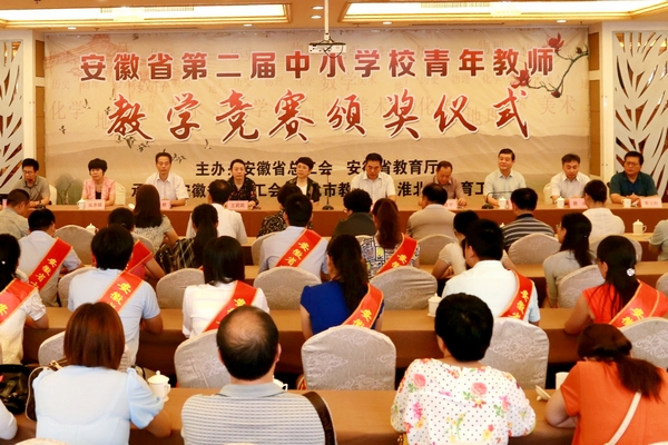 省教育廳副廳長(zhǎng)金燕、省總工會(huì)副巡視員張保華、淮北市副市長(zhǎng)王莉莉和省教育廳相關(guān)處室負(fù)責(zé)人出席了頒獎(jiǎng)儀式。金燕廳長(zhǎng)在講話中指出,各位參賽教師都是全省中小學(xué)青年教師的優(yōu)秀代表,更要自覺踐行習(xí)近平總書記提出的有理想信念、有道德情操、有扎實(shí)學(xué)識(shí)、有仁愛之心的“四有”好老師標(biāo)準(zhǔn),為促進(jìn)教育公平、提高教育質(zhì)量做出新的更大貢獻(xiàn)。她希望各位教師要堅(jiān)持立德樹人,做學(xué)生健康成長(zhǎng)的引路人;要注重學(xué)習(xí)創(chuàng)新,做教育教學(xué)改革的先鋒隊(duì);要始終為人師表,做“愛與責(zé)任”的守護(hù)者。同時(shí)她要求各級(jí)教育行政部門,要把加強(qiáng)教師隊(duì)伍建設(shè)作為最重要的基礎(chǔ)工作來抓,滿腔熱情關(guān)心教師,充分信任、緊緊依靠廣大教師,積極支持優(yōu)秀教師成長(zhǎng),努力改善教師待遇,真正使教師成為最受社會(huì)尊重的職業(yè),為廣大教師干事創(chuàng)業(yè)營(yíng)造良好的環(huán)境。