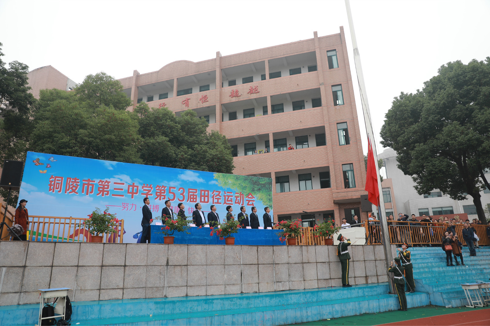 本校訊 10月25日上午,小雨柔柔,盡管天公不太給力,但三中的師生們格外賣力,倍受關(guān)注的銅陵市第三中學(xué)第53屆田徑運(yùn)動(dòng)會(huì)在體育操場(chǎng)開幕。銅陵三中黨委書記、校長(zhǎng)鐘士標(biāo),結(jié)對(duì)友好學(xué)校樅陽(yáng)湯溝中學(xué)副校長(zhǎng)祖學(xué)進(jìn),銅陵三中副校長(zhǎng)葉葉,銅陵三中副校長(zhǎng)張國(guó)榮等領(lǐng)導(dǎo)出席開幕式,第53屆運(yùn)動(dòng)會(huì)組委會(huì)成員及廣大師生觀看了開幕式,開幕式由銅陵三中教務(wù)處主任張尤俊主持。