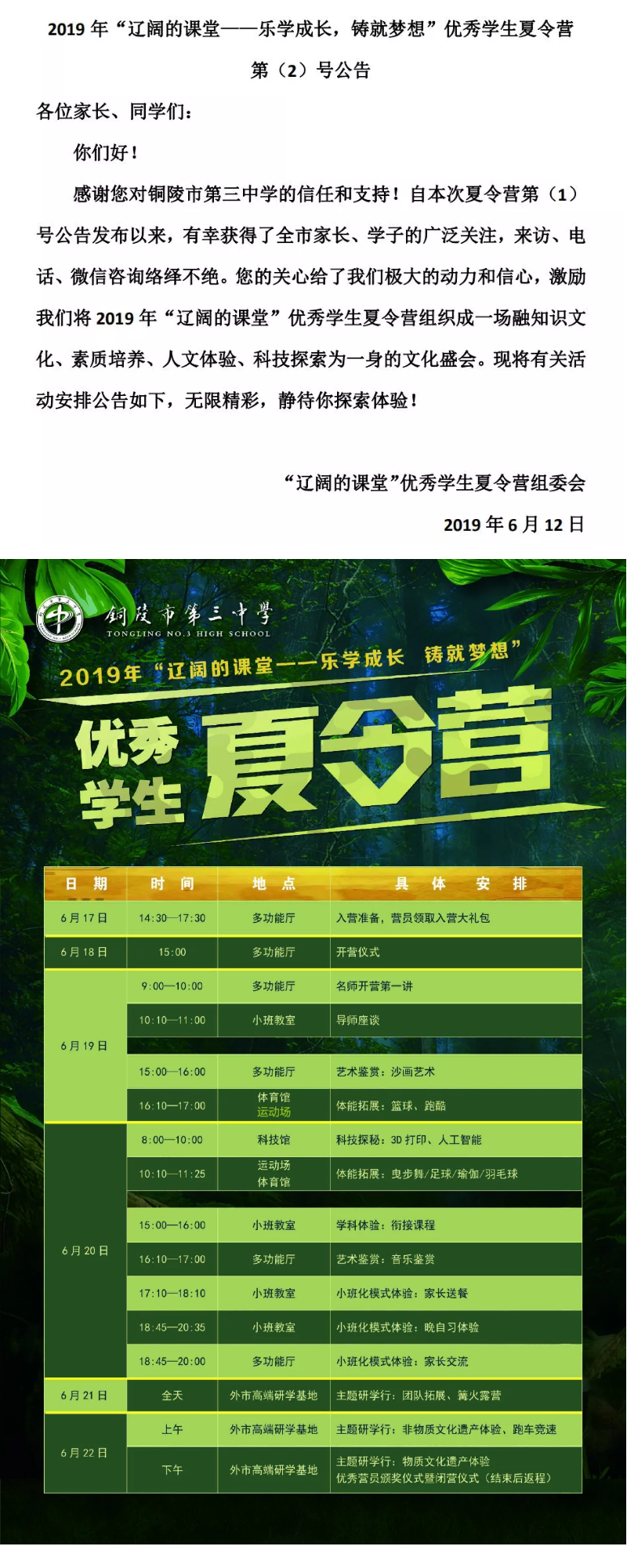 2019年優(yōu)秀學(xué)生夏令營 第(2)號公告