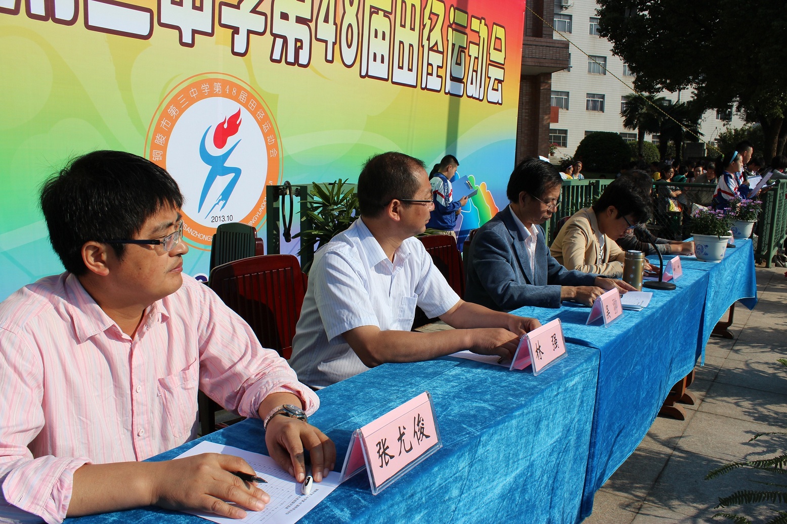 校黨總支副書記吳翀發(fā)表了熱情洋溢、催人奮進(jìn)的開幕詞,吳翀副書記指出:本屆運(yùn)動(dòng)會(huì)將積極貫徹學(xué)!吧眢w健康、心理陽光、學(xué)業(yè)進(jìn)步”的辦學(xué)理想,是對(duì)大家心理素質(zhì),身體素質(zhì),體育運(yùn)動(dòng)水平的一次大檢驗(yàn),也是對(duì)全體師生組織紀(jì)律性和精神風(fēng)貌的大檢閱,是銅陵三中團(tuán)隊(duì)協(xié)作精神的大體現(xiàn)。在熱烈的期盼中,吳翀副書記宣布銅陵市第三中學(xué)第48屆秋季學(xué)生田徑運(yùn)動(dòng)會(huì)正式開幕。
