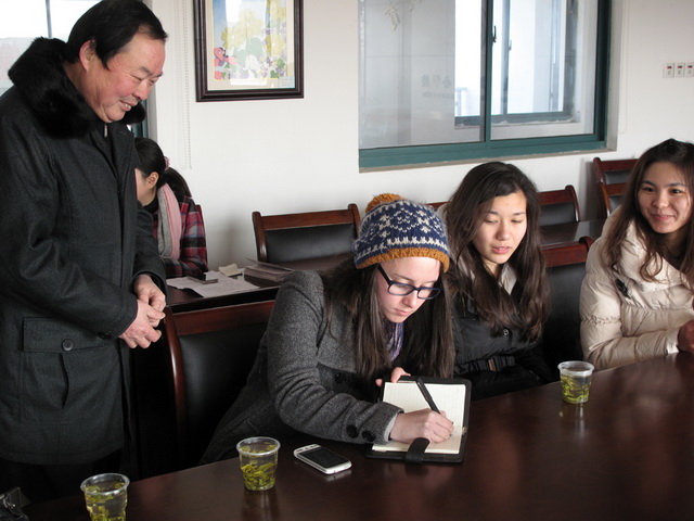 校長(zhǎng)也成了外教的粉絲,請(qǐng)露絲簽名留念!
