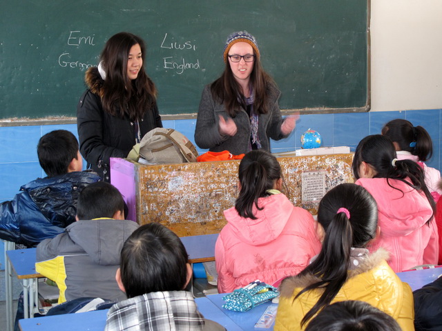 表情豐富的外教和留學(xué)生深深的吸引了鄉(xiāng)村孩子