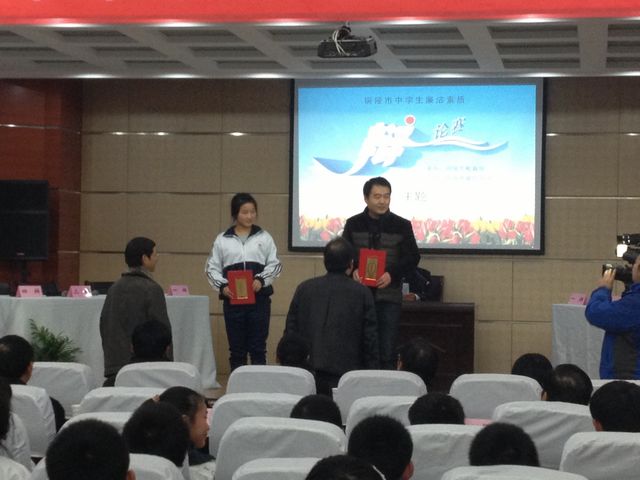 為深入推進青少年廉潔教育,扎實開展廉政文化進校園工作,增強學(xué)生反腐倡廉的意識,提高學(xué)生思辨能力和表述能力,培養(yǎng)學(xué)生團隊合作精神,由我校政教處組建的學(xué)生代表隊,在2013年12月13日市教育局舉辦的全市“中學(xué)生廉潔素質(zhì)辯論賽”中,思維敏捷,沉著應(yīng)戰(zhàn),發(fā)揮出色,表現(xiàn)優(yōu)異,一舉奪得“團體優(yōu)秀” 獎;其中,高二(1)班的張肖同學(xué)榮獲省示范高中組唯一的“最佳辯手”獎;高二(2)班朱熠瑩、胡忠澤同學(xué)和高一(18)班方若蕾同學(xué)分別榮獲“優(yōu)秀辯手”獎;政治教師方進同志榮獲“優(yōu)秀指導(dǎo)教師”獎。