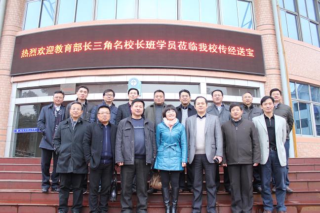 本校訊 12月18日下午,由教育部主辦的長(zhǎng)三角名校長(zhǎng)學(xué)習(xí)班一行來(lái)我校交流考察。校黨總支書記,校長(zhǎng)鐘士標(biāo)、副書記吳翀、副校長(zhǎng)葉葉、保衛(wèi)科長(zhǎng)林強(qiáng)、總務(wù)處主任何宏偉、外聯(lián)科科長(zhǎng)粱波、團(tuán)委書記徐盼等陪同到訪的貴賓興致勃勃地參觀了我校植物園,生態(tài)館等校園設(shè)施,我校精致淡雅的校園環(huán)境和深厚的人文底蘊(yùn)以及近幾年驕人的辦學(xué)實(shí)績(jī)給校長(zhǎng)們留下了深刻的印象。