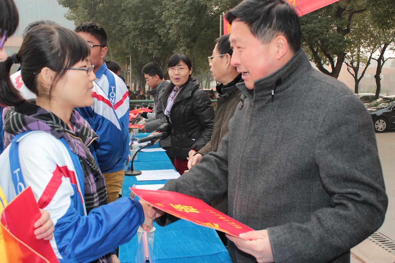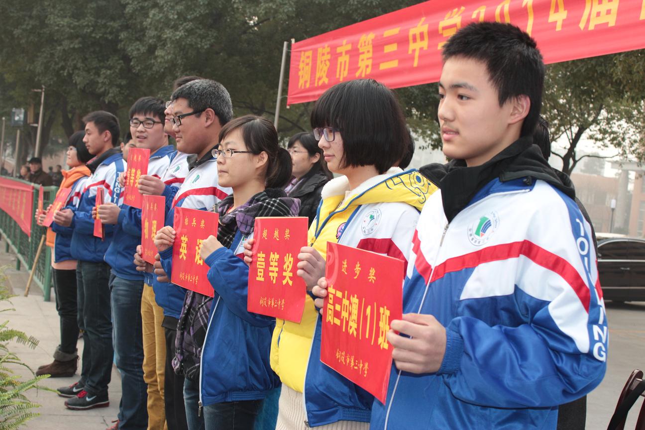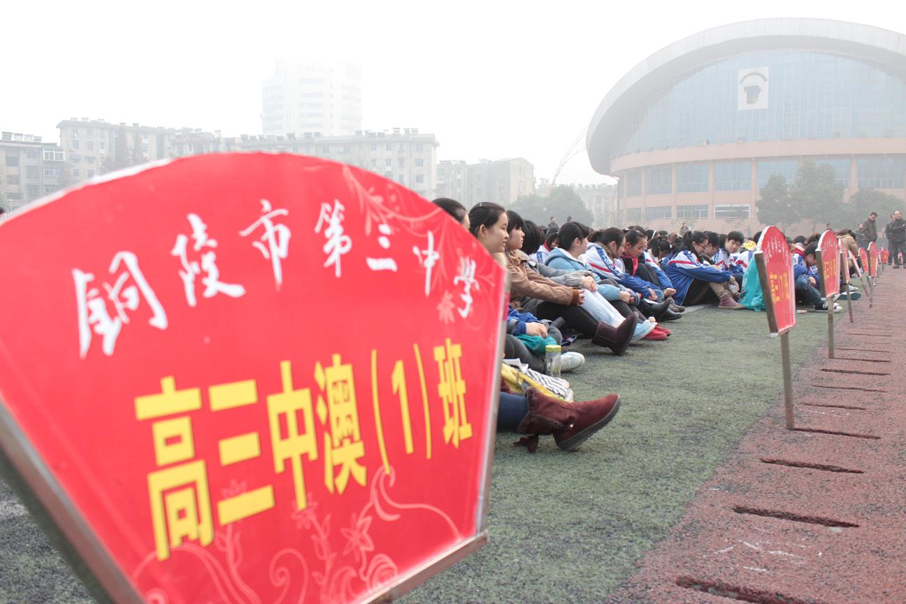 本校訊 入冬的銅都大地被連日的霧霾天氣浸染,格外有點(diǎn)醉意朦朧之俏。六日過午后,紅日撥云,銅陵三中體育場上空霞光伏射,萬丈縱橫,聚集在此的近兩千名2014屆高三畢業(yè)生和他們家長們正情意高漲。