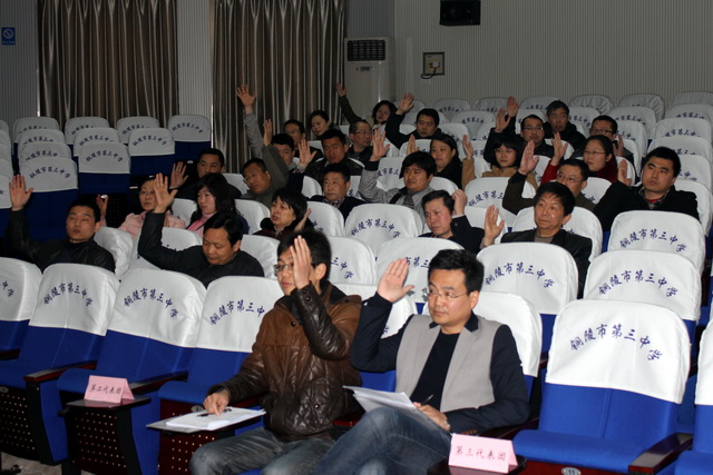 本校訊 2013年3月17日上午9時整,銅陵市第三中學(xué)第六屆第一次教職工代表大會在多功能報告廳隆重召開。出席大會的領(lǐng)導(dǎo)有校黨總支書記、校長鐘士標(biāo)同志,校黨總支副書記吳翀同志,副校長趙家同同志和副校長葉葉同志。會議由校總支副書記吳翀同志主持。