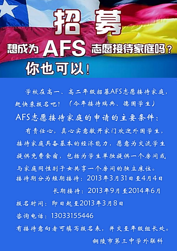國(guó)際AFS志愿接待家庭招募活動(dòng)開始啦!
