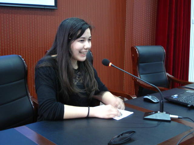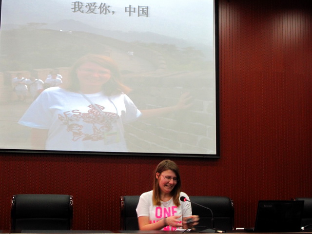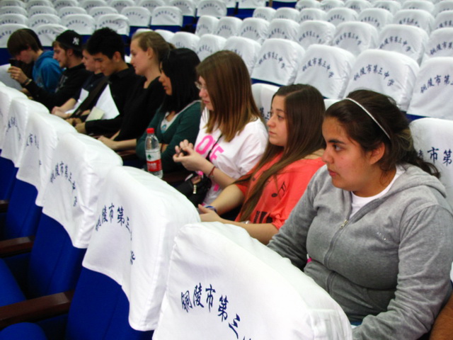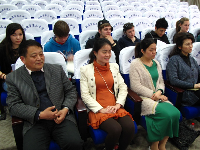 省教育廳胡主任主持講話,他總結(jié)了2012-2013年度AFS來華學(xué)生中期工作,并感謝接待家庭和項目學(xué)校對此項工作的支持和配合。在隨后進行的AFS來華學(xué)生展示成果的中文演講環(huán)節(jié)中,學(xué)生們迫不及待地走上講臺,用他們的“中國話”和PPT 介紹自己、所在學(xué)校和接待家庭。盡管每個學(xué)生的漢語水平不同,但基本都還算流利,能讓中國觀眾聽懂,不時還會引起臺下一陣陣笑聲。從來華時的“默默無聞”到現(xiàn)在能用中文交流溝通,可見在這短短幾個月中他們進展順利。