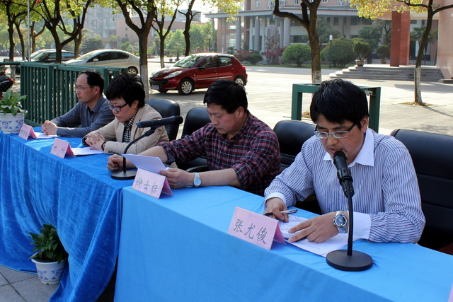 會(huì)議由校黨總支書記、校長鐘士標(biāo)主持。鐘校長首先向驕陽下堅(jiān)守的全體學(xué)生和家長親切問好,鐘校長那入情入理的開場(chǎng)白讓所有與會(huì)人員獲得一種領(lǐng)導(dǎo)親民的涼風(fēng)。接著,校教務(wù)處主任張尤俊用清亮、明晰的語言詳細(xì)地分析了2013“江南十!蔽倚5目荚嚦煽。張主任的分析中既有驚喜和期盼,又含鼓勵(lì)和擔(dān)憂。會(huì)議的高潮是高三年級(jí)組長柯行余老師宣布此次考試中優(yōu)秀學(xué)生名單。每一次的名字宣讀都引來熱烈的掌聲。當(dāng)高三(9)班黃彩云同學(xué)作為學(xué)生代表上臺(tái)發(fā)言時(shí),所有師生都靜心細(xì)聽。該同學(xué)在“江南十!笨荚囍幸晕目638的高分名列全市第一,全省前20,這樣的可喜成績讓我們有理由相信2013年的高考我校定有驚喜。當(dāng)一位位優(yōu)秀學(xué)生代表上臺(tái)從校領(lǐng)導(dǎo)手中接過表彰時(shí),可以想象到那是他們?nèi)松卸嗝创蟮墓膭?lì)。此時(shí),所有人都忘記了不退的驕陽,唯有激動(dòng)和感懷。劉伍兵老師作為教師代表發(fā)言,劉老師語言華美,理論深刻,發(fā)言稿就是一篇好文章。高二學(xué)生代表也對(duì)學(xué)長們51天后的人生大考送來了真誠的祝福。大會(huì)的第四項(xiàng)由葉葉副校長給大家講解高考前學(xué)習(xí)、生活、身體、心理等注意事項(xiàng)。葉校長語音純正、聲情并茂、語言樸實(shí)、熱情溫婉,親民形象盡顯。最后,鐘校長呼吁全體家長、師生起立大喊口號(hào):“苦戰(zhàn)51天!英雄無悔!為自己拼搏,為母校爭(zhēng)光!”此刻三中的天空回響著立誓的聲音。