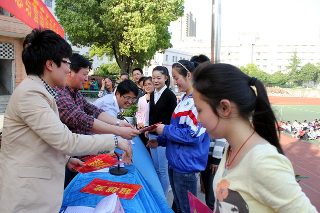 本校訊 2013年4月14日下午4時(shí),在學(xué)校教務(wù)處和高三年級(jí)組的精心安排和組織下,在全體學(xué)生和家長的期盼中,2013“江南十!背煽兎治鰰(huì)暨高考動(dòng)員會(huì)在校大操場(chǎng)舉行。與會(huì)人員熱情高漲,盛大會(huì)場(chǎng)秩序井然。學(xué)生家長第一次享受到了自己孩子提供的座位,而所有高三學(xué)生席地而坐,場(chǎng)面溫馨感人。