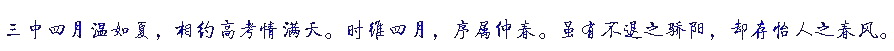 感謝高三家長的參與,感謝高三學(xué)子的認(rèn)真,感謝高三老師的組織,感謝校領(lǐng)導(dǎo)的關(guān)心!讓我們?cè)俳釉賲,團(tuán)結(jié)一心,堅(jiān)守并苦戰(zhàn)50天,收獲的季節(jié)必定滿載!