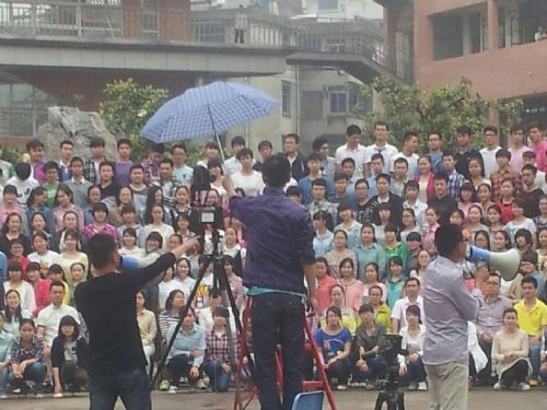 本校訊 又到一年畢業(yè)季,銅陵三中今年的畢業(yè)照活動(dòng)頗具規(guī)模與氣氛,上午九點(diǎn),來(lái)自影超攝影部的技術(shù)人員便忙碌開(kāi)來(lái),近十點(diǎn)鐘左右,工作人員手持?jǐn)U音喇叭開(kāi)始指揮師生列隊(duì)。十時(shí)三十分左右,千余名師生終于在行政辦公樓前圍成一個(gè)數(shù)層的巨大U形,形似體育場(chǎng)的環(huán)形看臺(tái),隨著工作人員觸動(dòng)按鈕,環(huán)攝照相機(jī)開(kāi)始近360度的掃描拍攝,1分鐘后,銅陵三中有史以來(lái)最“牛”的高三畢業(yè)照出爐。