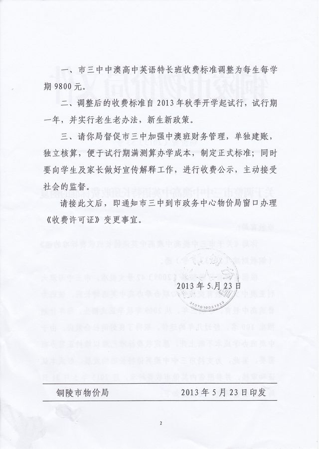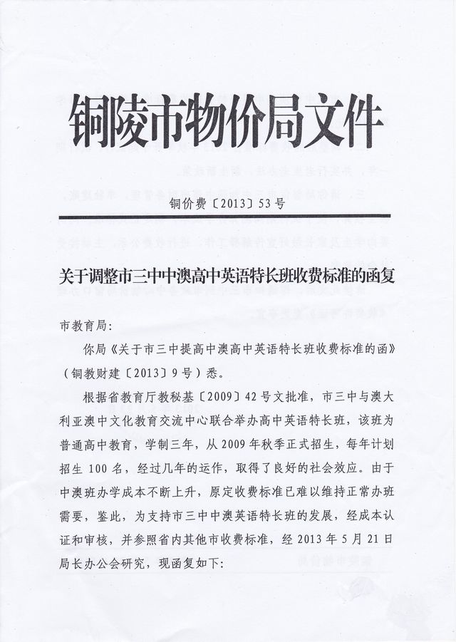 銅陵市第三中學(xué)中澳班收費(fèi)標(biāo)準(zhǔn)