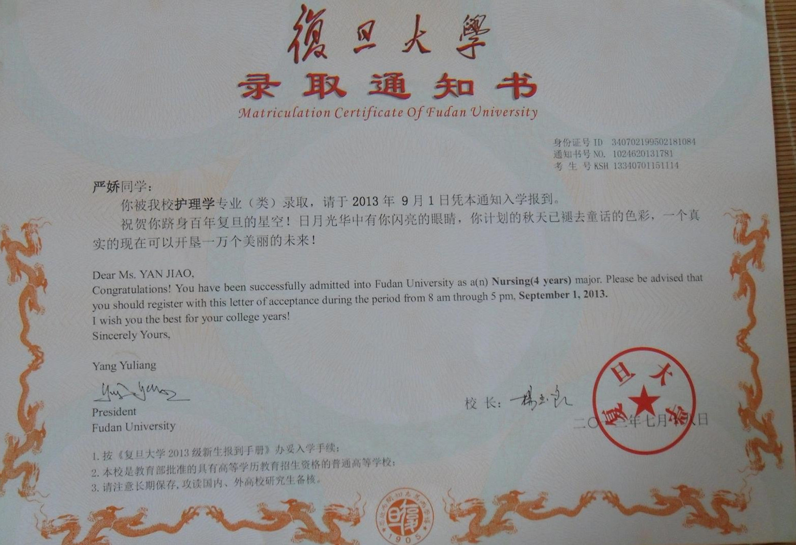 他的同班同學(xué)嚴(yán)嬌同樣選擇了復(fù)旦大學(xué)。