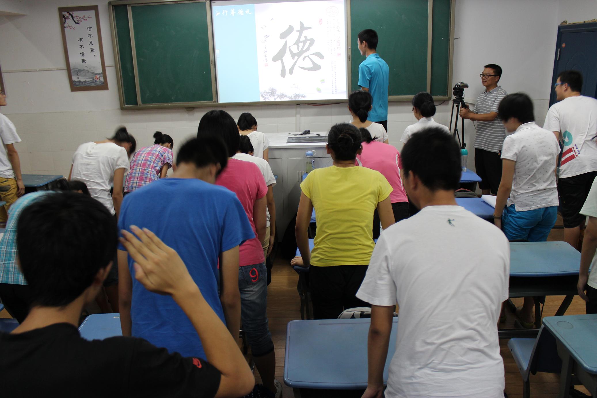 首節(jié)道德講堂上,大家隨著舒緩輕柔的音樂閉上眼睛進(jìn)入省身階段,在接下來的唱道德歌、品故事、誦經(jīng)典、念勸善詞、發(fā)善心、行尊德禮、送吉祥、做善事的環(huán)節(jié)中,同學(xué)們積極參與,現(xiàn)場(chǎng)氛圍濃厚,大家就如何崇德向善、文明守禮暢談了自己的體會(huì)。