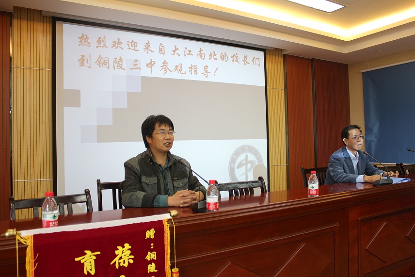 吳書記和葉校長給來訪的校長們介紹了我校的辦學(xué)思想、辦學(xué)愿景和特色。校長們對于我,F(xiàn)代化的基礎(chǔ)設(shè)施和古典園林文化尤為贊賞,認(rèn)為銅陵三中布局大氣雅致,學(xué)校生態(tài)綠化別具特色,道路線條流暢鮮活,是綠色教育的典范,良好的人文環(huán)境讓學(xué)生的精神和氣質(zhì)得以棲息,銅陵三中真正成為學(xué)生們的青春動力加油站。