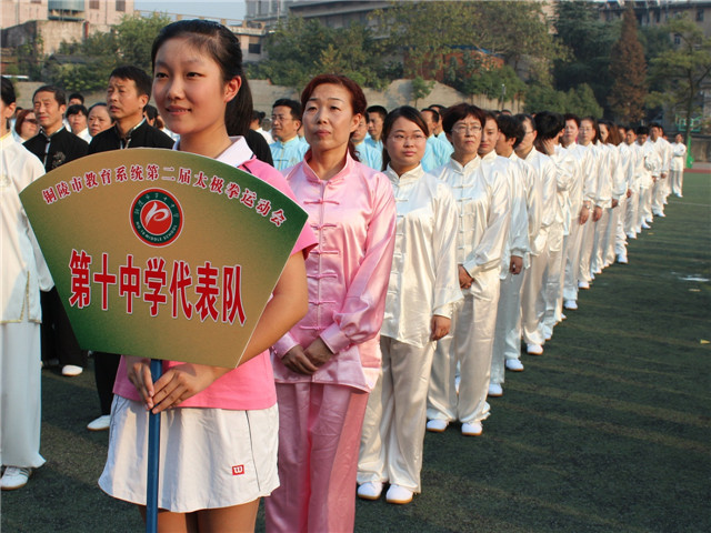 在接下來的團體比賽中,率先亮相的市三中代表隊打出鄧小平題寫的“太極拳好”幾個大字,讓評委們眼前一亮;各代表隊依次擺開陣容,將太極拳柔美含蓄、靜動相生的神韻演繹得淋漓盡致,充分展示了太極的魅力,特別是市一中的古箏配樂、市十中的書法表演和縣區(qū)代表隊的劍舞,把比賽推向了一個個高潮。
