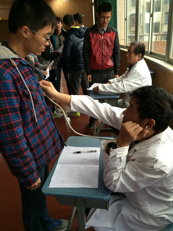 為全面預(yù)防和控制學(xué)生傳染病、常見病的發(fā)生,及時準(zhǔn)確掌握學(xué)生體質(zhì)健康的發(fā)展動態(tài),增強(qiáng)學(xué)生體質(zhì),切實保障全體學(xué)生健康成長。2015年11月12日至13日,教務(wù)處積極協(xié)調(diào)市立醫(yī)院安排了對全校學(xué)生的體質(zhì)健康檢查。