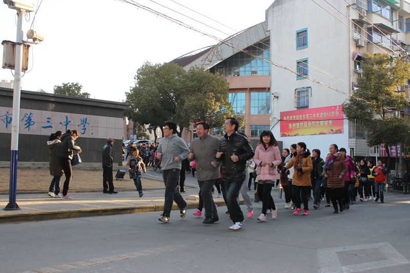 本次長跑從三中出發(fā),至市政府廣場折返,全長約3000米左右。校領(lǐng)導鐘士標、吳翀、葉葉等熱情參與。