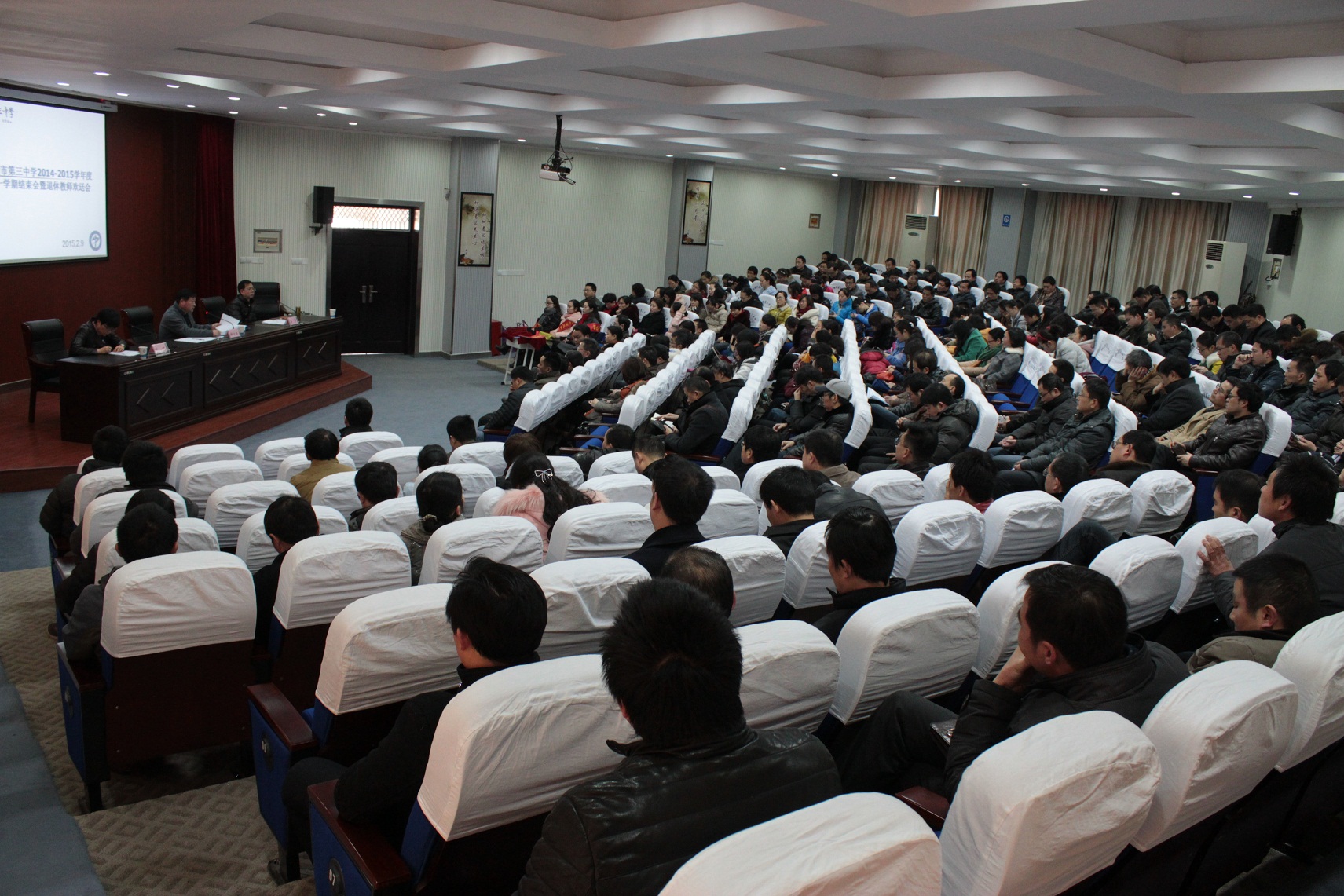 首先,鐘校長作學(xué)期工作總結(jié)。鐘校長指出,2014年學(xué)校各項(xiàng)工作全面、持續(xù)、快速、深入發(fā)展,重點(diǎn)工作取得“大豐收”、實(shí)現(xiàn)“大突破”。鐘校長充分肯定了學(xué)校過去一年在德育、教科研、學(xué)科競賽、后勤服務(wù)、外事交流、綜治維穩(wěn)、工會等各個(gè)方面取得的突出成績;重點(diǎn)表揚(yáng)了在工作中涌現(xiàn)出的一批師德高尚、師能精湛并鼎力支持學(xué)校工作、深受學(xué)生愛戴的優(yōu)秀教師。最后,鐘校長還對今后進(jìn)一步加強(qiáng)黨風(fēng)廉政建設(shè)和師德師風(fēng)建設(shè)提出了具體要求和殷切期望。