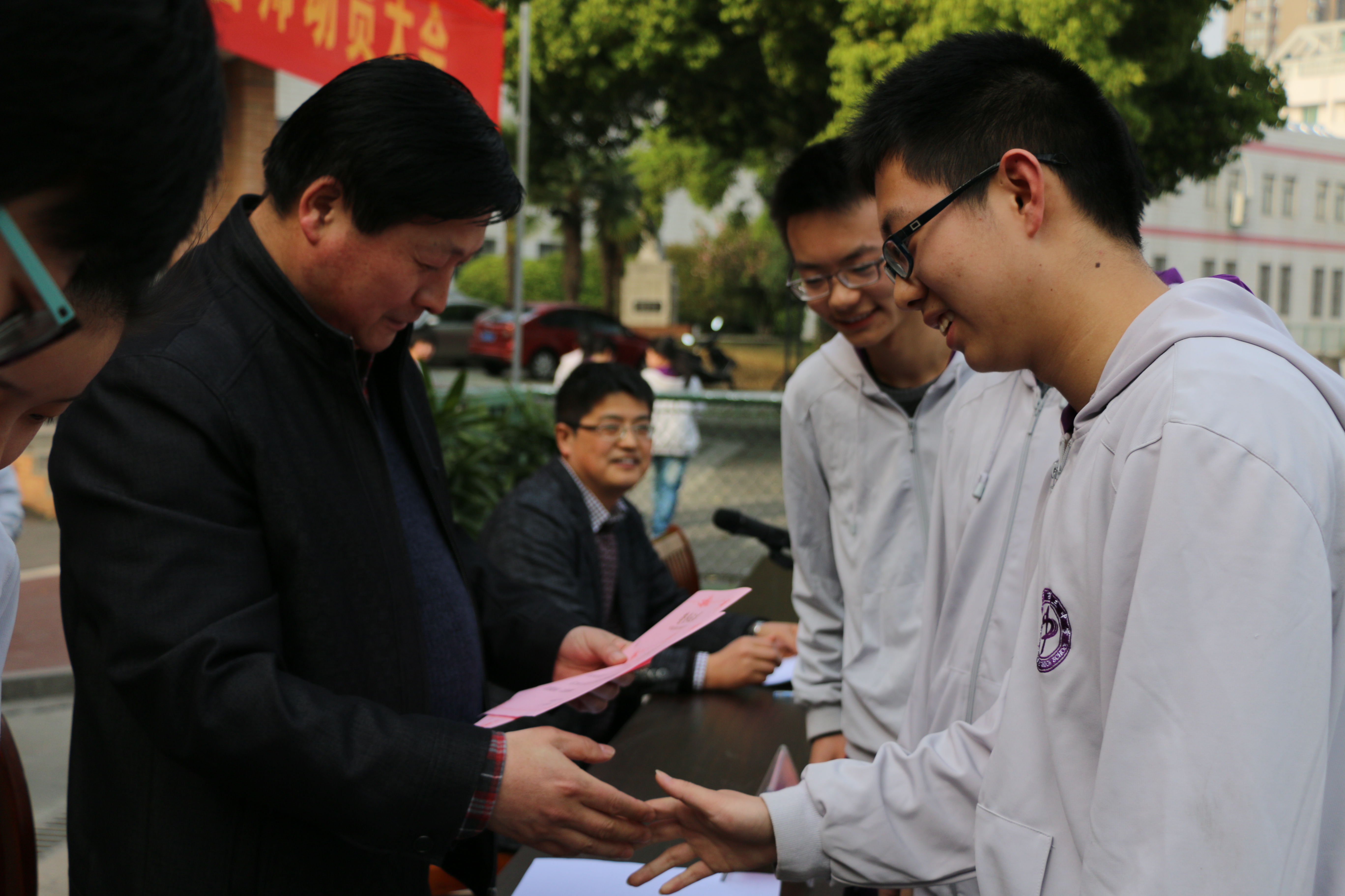 年級部長方進宣讀了在“江南十!笨荚囍腥〉脙(yōu)異表現(xiàn)的學生名單,學校對這些同學進行了表彰。