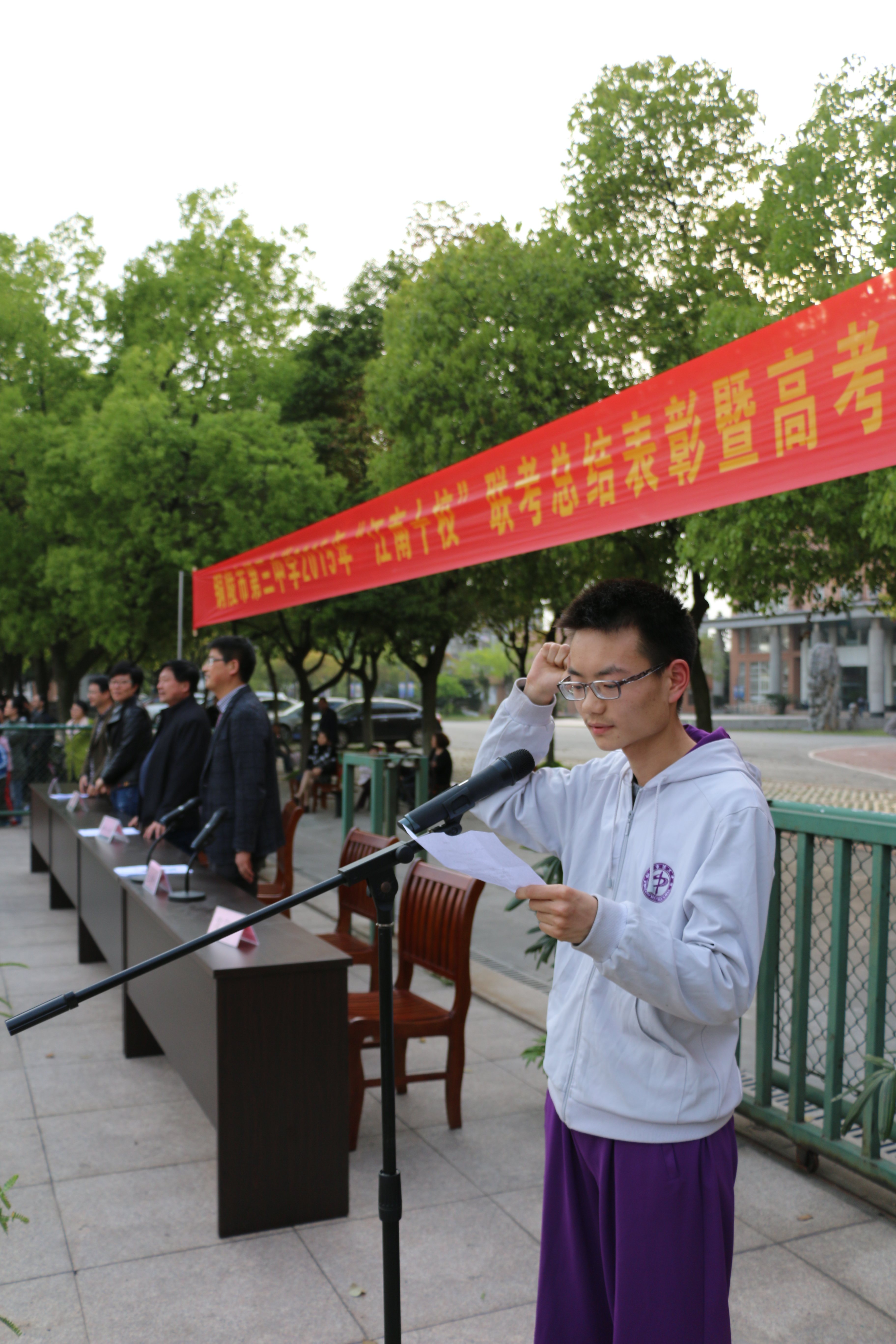 “我以青春的名義宣誓……讓夢想在六月的陽光里飛翔……”在319班吳誼文同學領誓下,在場的全體高三學生和他們的家長們高舉右手莊嚴宣誓,鏗鏘激昂的誓言響徹了整個校園。這是青春的誓言,更是向高考傳遞出的必勝信念。相信所有的同學都能在六月讓自己的夢想飛翔。