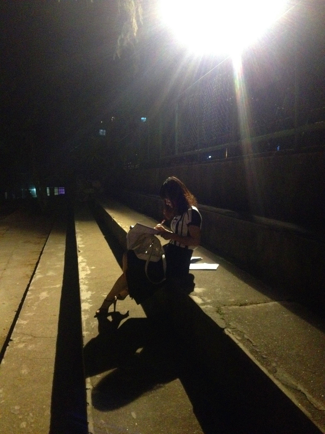 本校訊 23日晚8點,一位女教師在銅陵市三中操場的路燈下批改學生作業(yè)。經(jīng)了解,該教師為三中高三數(shù)學老師李紅,當晚,李紅老師準備在辦公室批改作業(yè),無奈鑰匙丟在家中,她只好拿著從家里帶來的學生試卷坐在路燈下批改,一邊等她的先生送來辦公室鑰匙。
